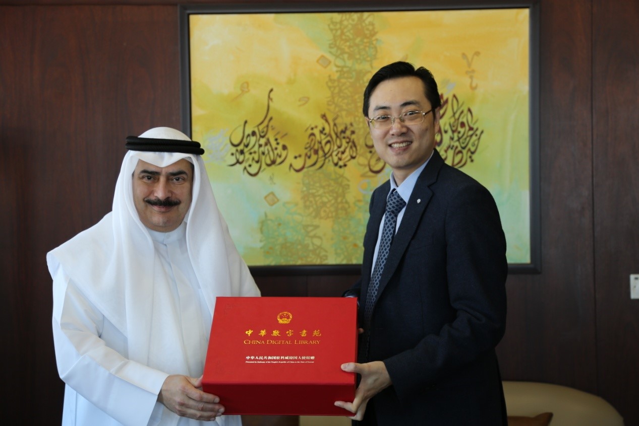 1121日,駐科威特使館向科威特國(guó)家圖書(shū)館贈(zèng)送電子圖書(shū)。駐科威特使館臨時(shí)代辦趙亮、科威特國(guó)家圖書(shū)館館長(zhǎng)卡米勒出席贈(zèng)書(shū)儀式。